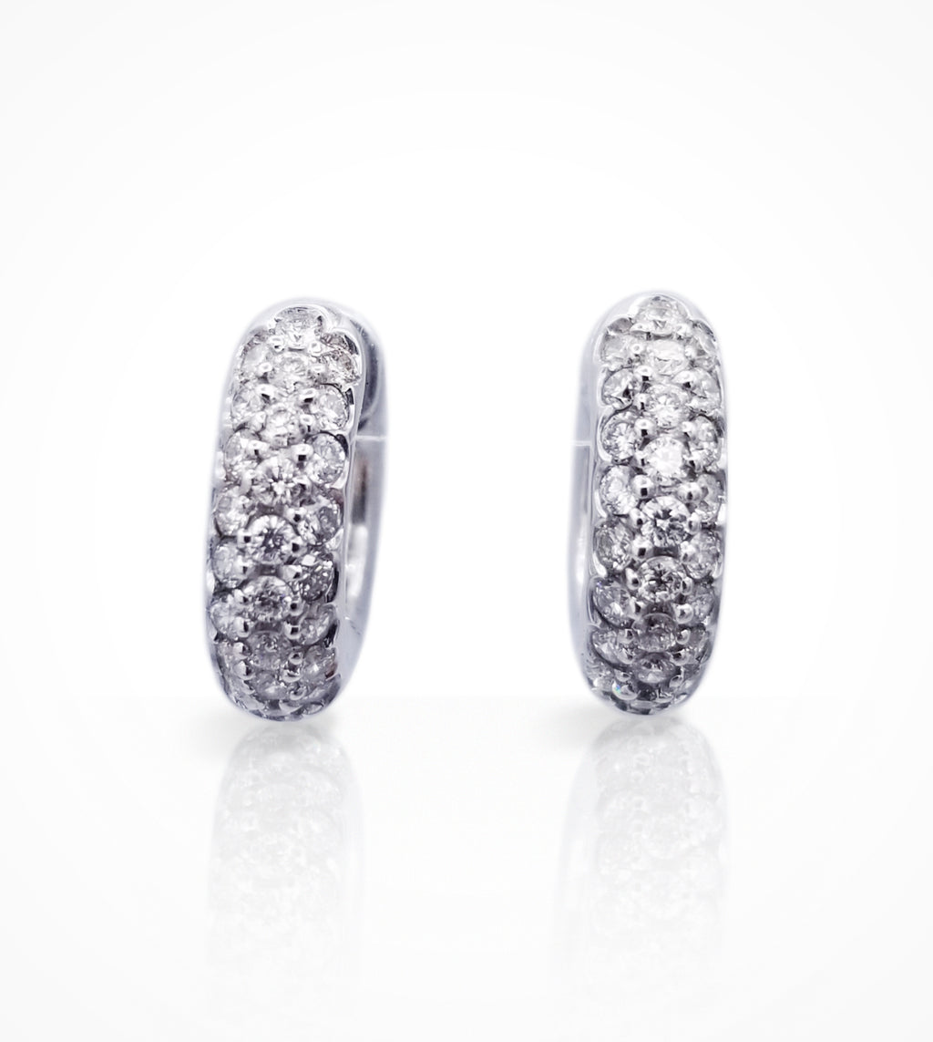 ED-003044-18K white gold small pave diamond huggy earrings, 3.5mm wide x 12mm outside diameter, set with 50 diamonds=0.42cts g si