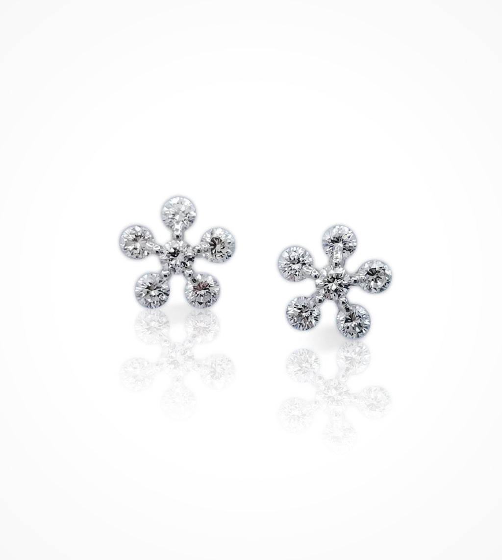 ED-006100-18K white gold diamond flower stud earrings, 12 diamonds=2.40cts g-si