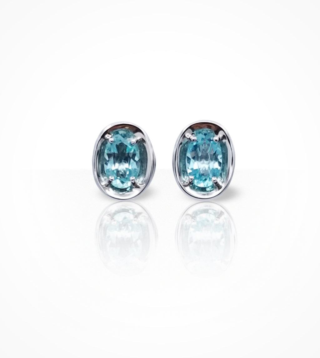ER00438-18K White gold and oval blue apatite=0.91cts, stud earrings.