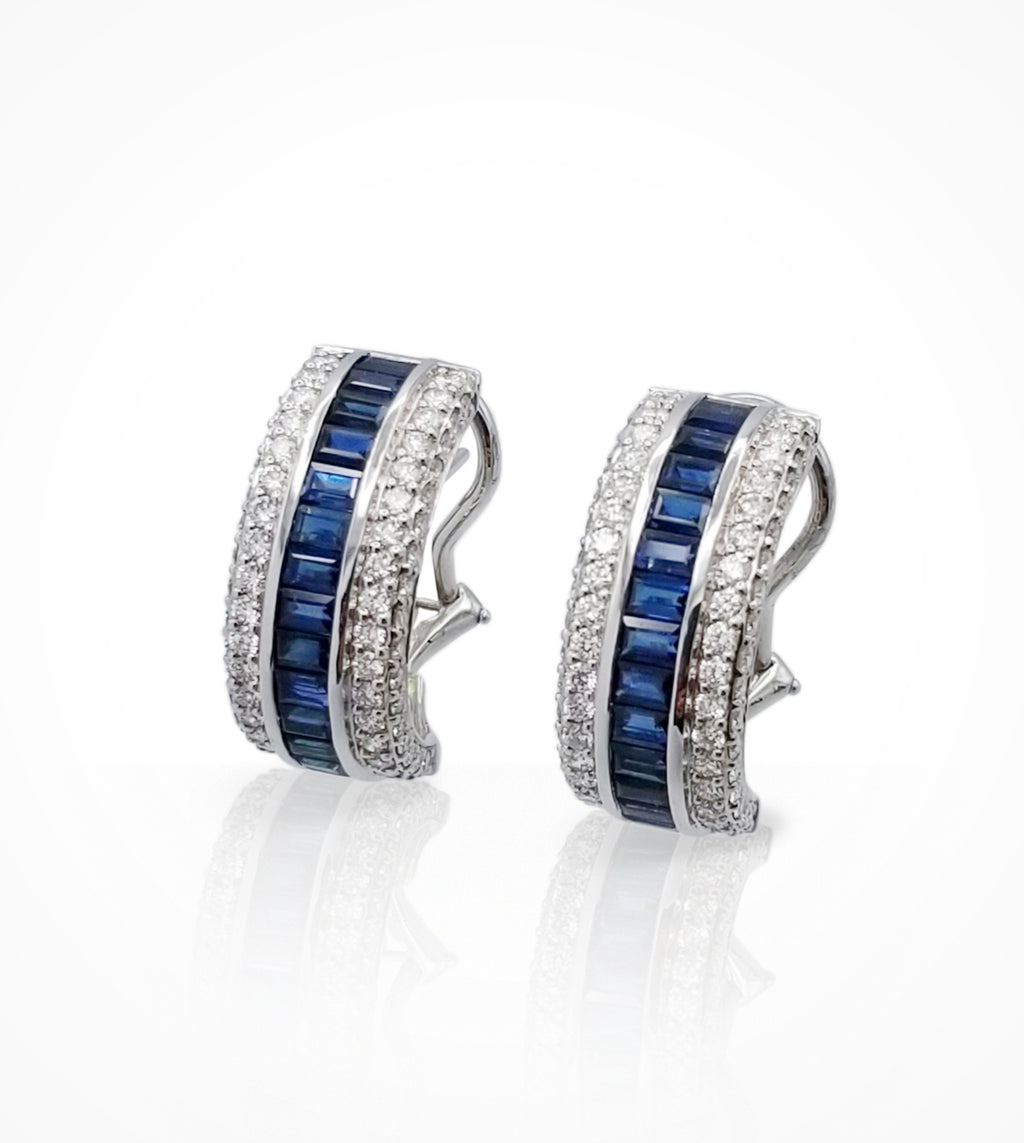 ER00505-18K white gold sapphire and diamond earrings. 32 Sapphires=3.52cts, 140 Diamonds=1.89cts