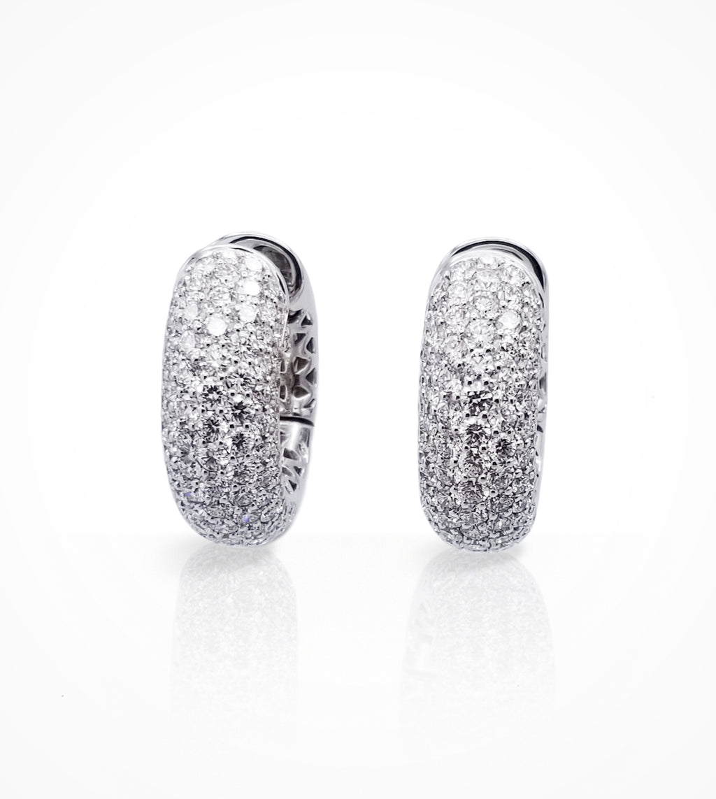 ER00564-18K white gold domed pave diamond hoops. 106 diamonds=3.67cts g-si